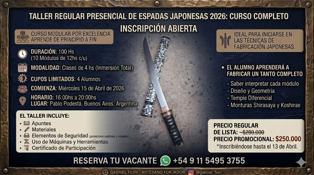 Descubre el arte ancestral de la forja y tecnicas de cuchilleria japonesa con Gabriel Fiori, un Maestro con 30 años de experiencia.